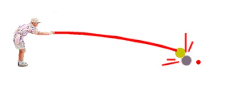 Đây là cách ném bi bạn nên sử dụng trên nền sân không đều. Bạn cần phải bắn vào điểm trung tâm của bi đối thủ, điểm đó gọi là "điểm sắt". Đây là cách bắn khó nhất đòi hỏi tính chính xác nhất. Bi của bạn phải bắn thẳng vào bi của đối thủ mà không cần chạm đất. Cú bắn hoàn hảo được gọi là "carreau": Bi của bạn phá bi của đối thủ ra và thay thế vào vị trí của nó! Cú bắn này được dành riêng cho nhà vô địch – và cho người rất may mắn!