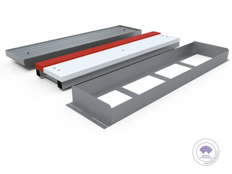 Bộ combo nhảy xa gồm: 1 khay lắp ván giậm nhảy, 1 nắp đậy khay ván và 1 ván giậm nhảy thi đấu