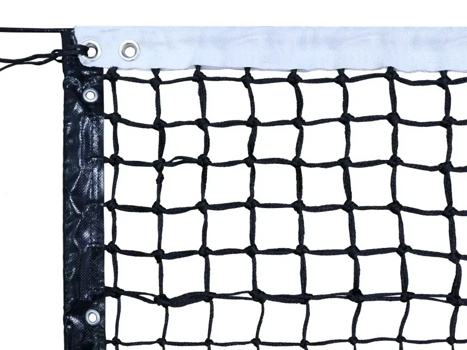 - Lưới tennis màu đen có gút, sợi HDPE BR4.0mm dệt ống xử lý kháng UV, ô lưới đơn 48mm với 6 hàng trên ô đôi.