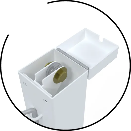 Bên trong thân trụ có tấm ngăn giúp cất tay quay khi không sử dụng