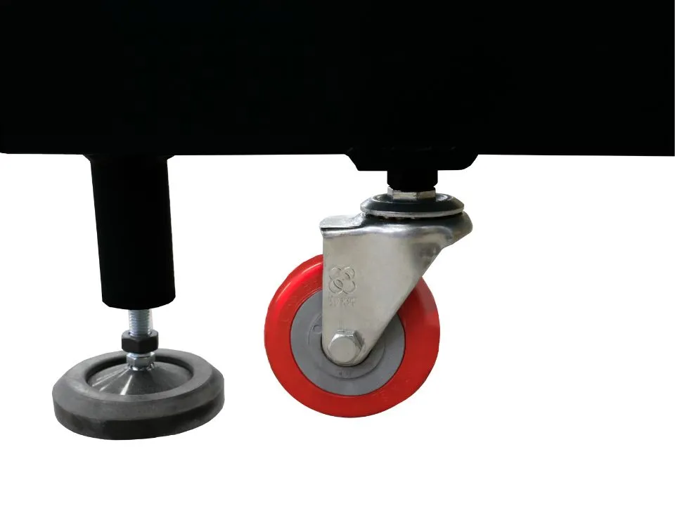 - Di chuyển bằng bánh xe D75mm, kết hợp chân đế điều chỉnh có bọc cao su giúp cố định trụ và tránh trầy xướt mặt sân