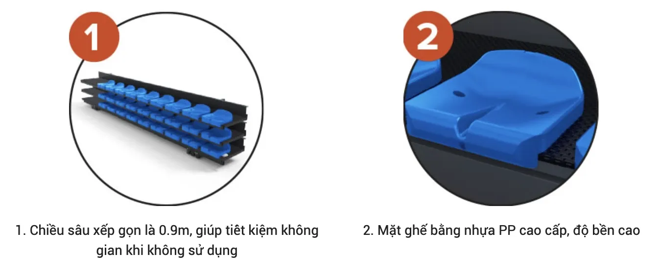 Khán đài xếp 3 hàng, sức chứa 27 chỗ ngồi