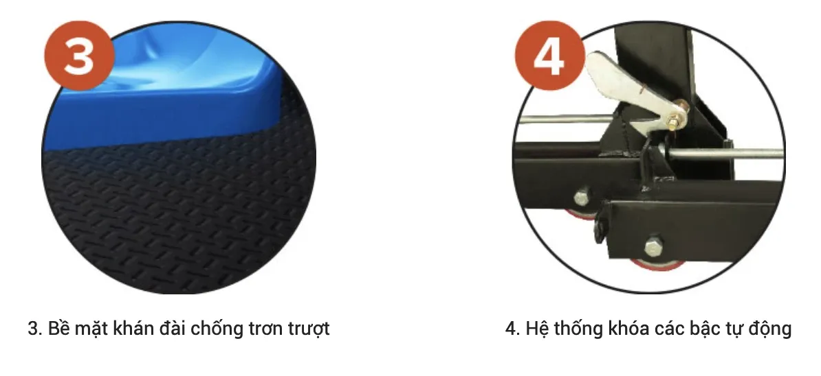 Khán đài xếp lồng 3 hàng, lối cầu thang bên phải hoặc trái, sức chứa 27 người